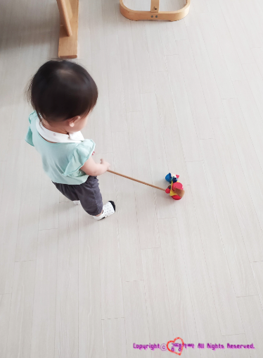 - 밀고 다닐 때(바퀴를 굴릴 때) 아이의 힘으로는 원활하게 밀리는 편은 아님