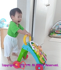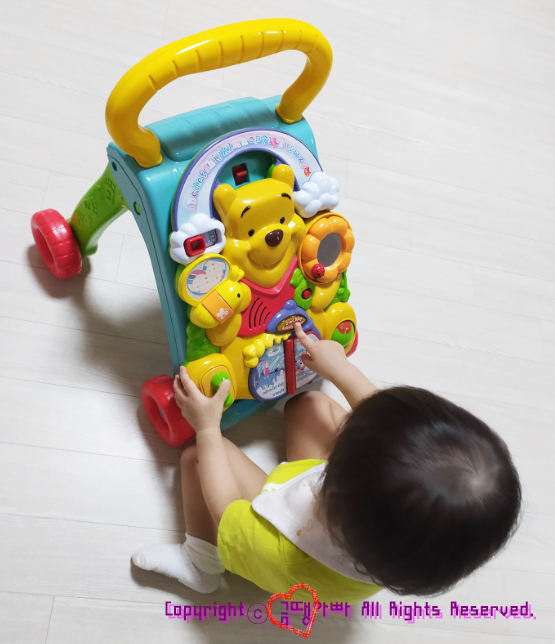 패널의 버튼 누르기 등의 기능 이외에는 걸음마 보조기의 기능으로 밀고 다니는 모습이 금세 적어졌습니다.