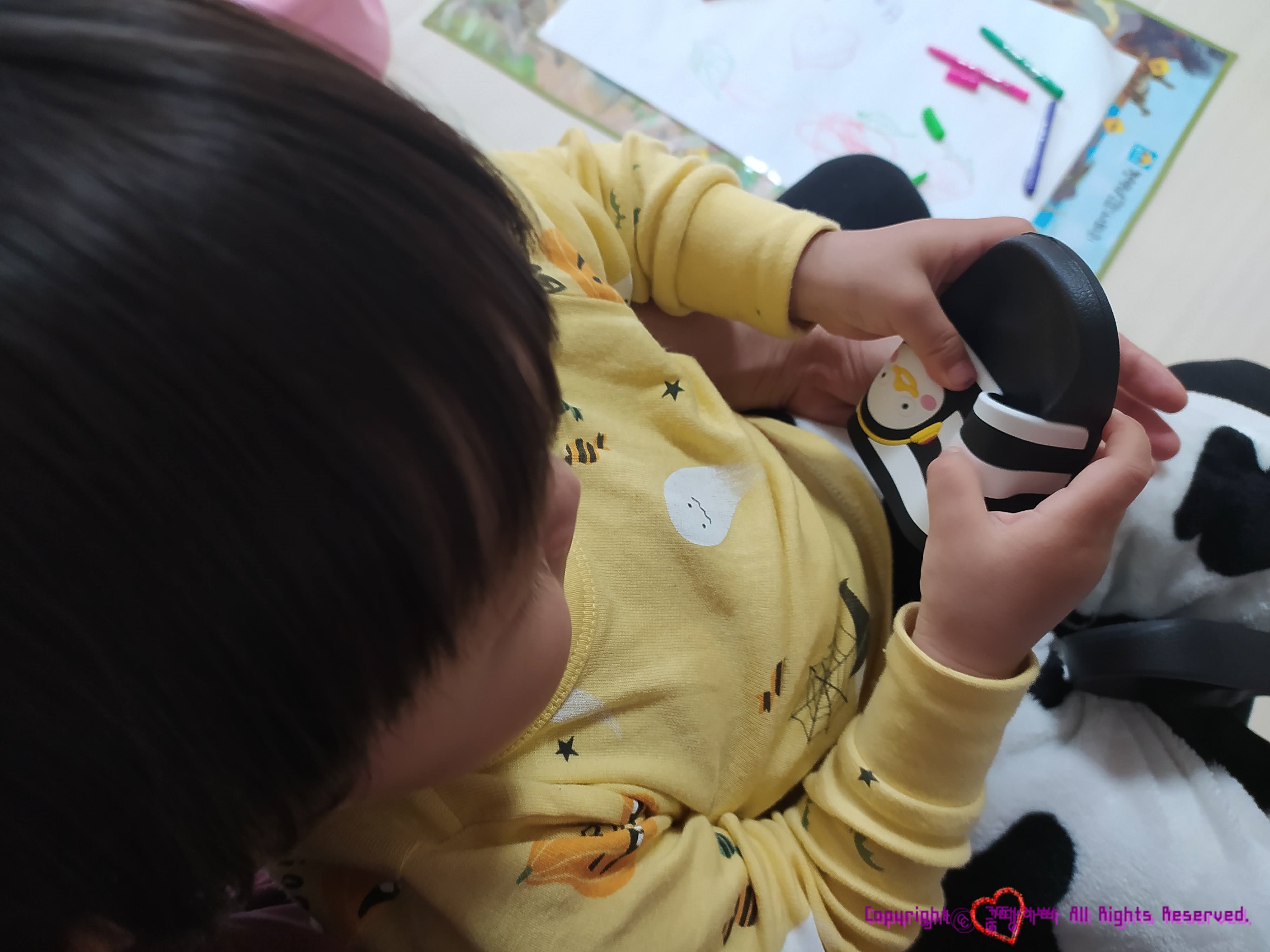 평소 신지 않을 때는 펭수 얼굴을 만지작 만지작 거리느라 바쁘다.