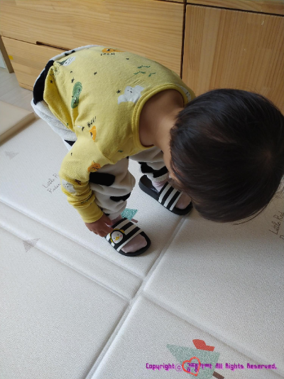 현 시점(23개월) 전까지는 큰 흥미를 갖지 않았다. 다만 엄마, 아빠 슬리퍼에만