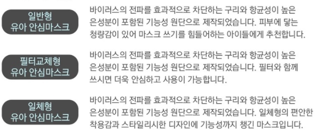 1. 제품명 : 베베누보 구리 은사가 들어간 유아 안심 마스크 일체형